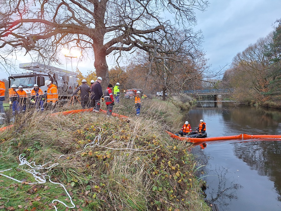Rund 30 Mitarbeitende von Vermilion Energy Germany und ExxonMobil haben in der Nähe von Brenneckenbrück (südwestlich Neubokel, Stadt Gifhorn) eine umfangreiche Ölwehrübung durchgeführt. Beide Unternehmen sind im Kreis Gifhorn in der heimischen Erdölproduktion aktiv. Anlass der Übung war ein realistisches Szenario: ein mögliches Leck an einer Erdölleitung, die die Aller kreuzt. Ein solcher Vorfall ist noch nie eingetreten, dennoch ist es für uns zentral, auf jeden Ernstfall vorbereitet zu sein.